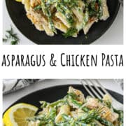 Serve asparagus chicken pasta with lemon wedges and extra parmesan cheese. Garlic bread or a slice of my sun-dried tomato quick bread are perfect, too. A simple green salad with cherry tomatoes is always a refreshing side dish for a filling pasta dinner. Other than that, this is really a complete meal on its own!
