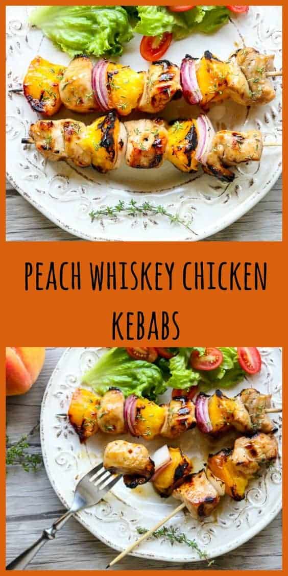 These Peach Whisky Chicken Kebabs are a truly summer meal. Fresh ripe local peaches and grilling are summer essentials.