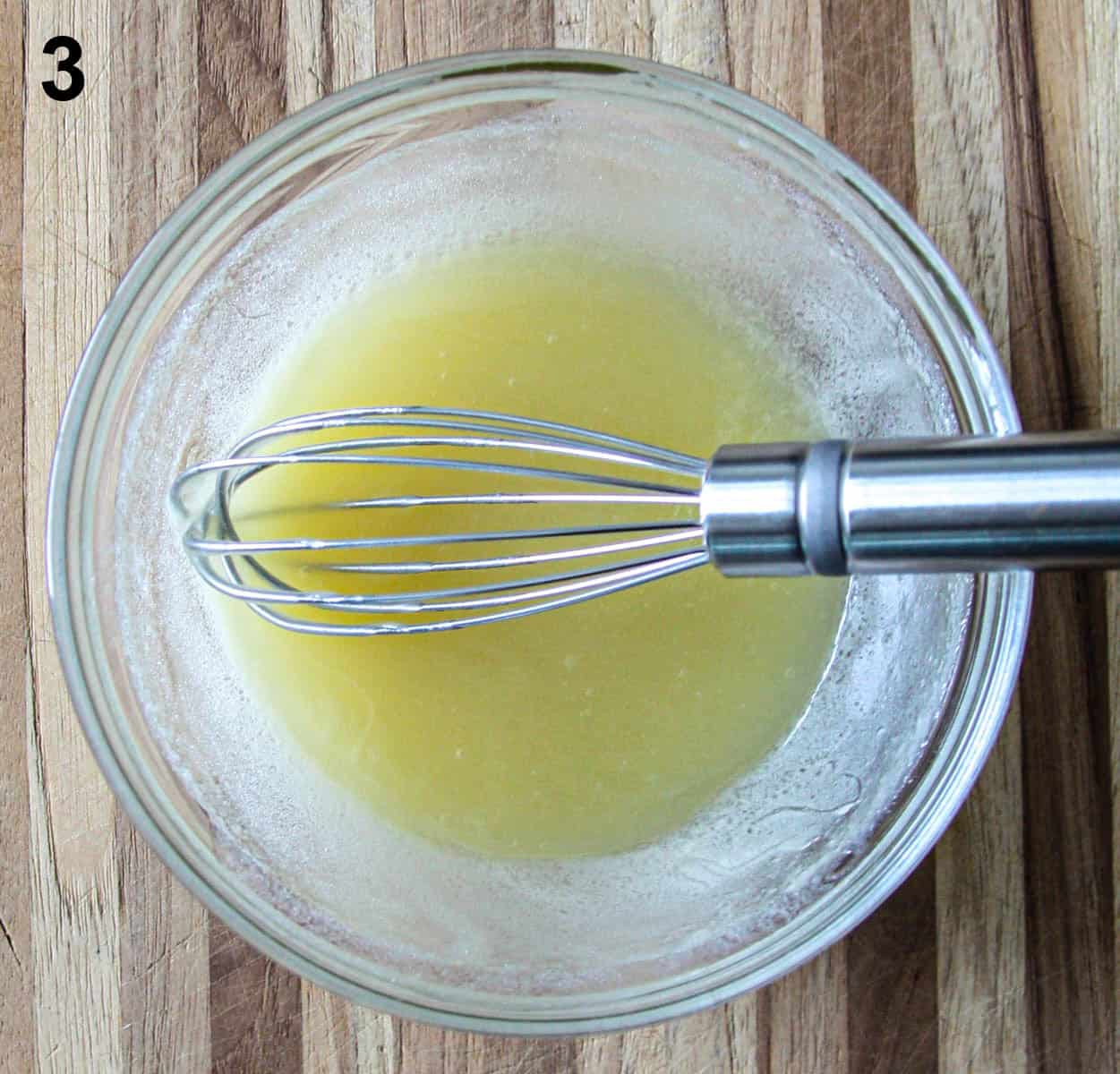 - In a small bowl, whisk together the honey and melted butter until smooth.
